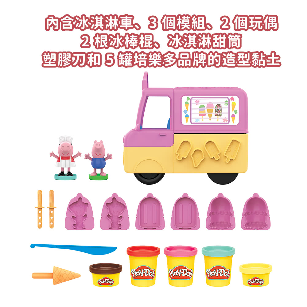 2)內含冰淇淋車、3 個模具、2 個玩具、2 個冰棒棍、冰淇淋蛋筒、塑料刀、5罐共8 盎司 無毒黏土