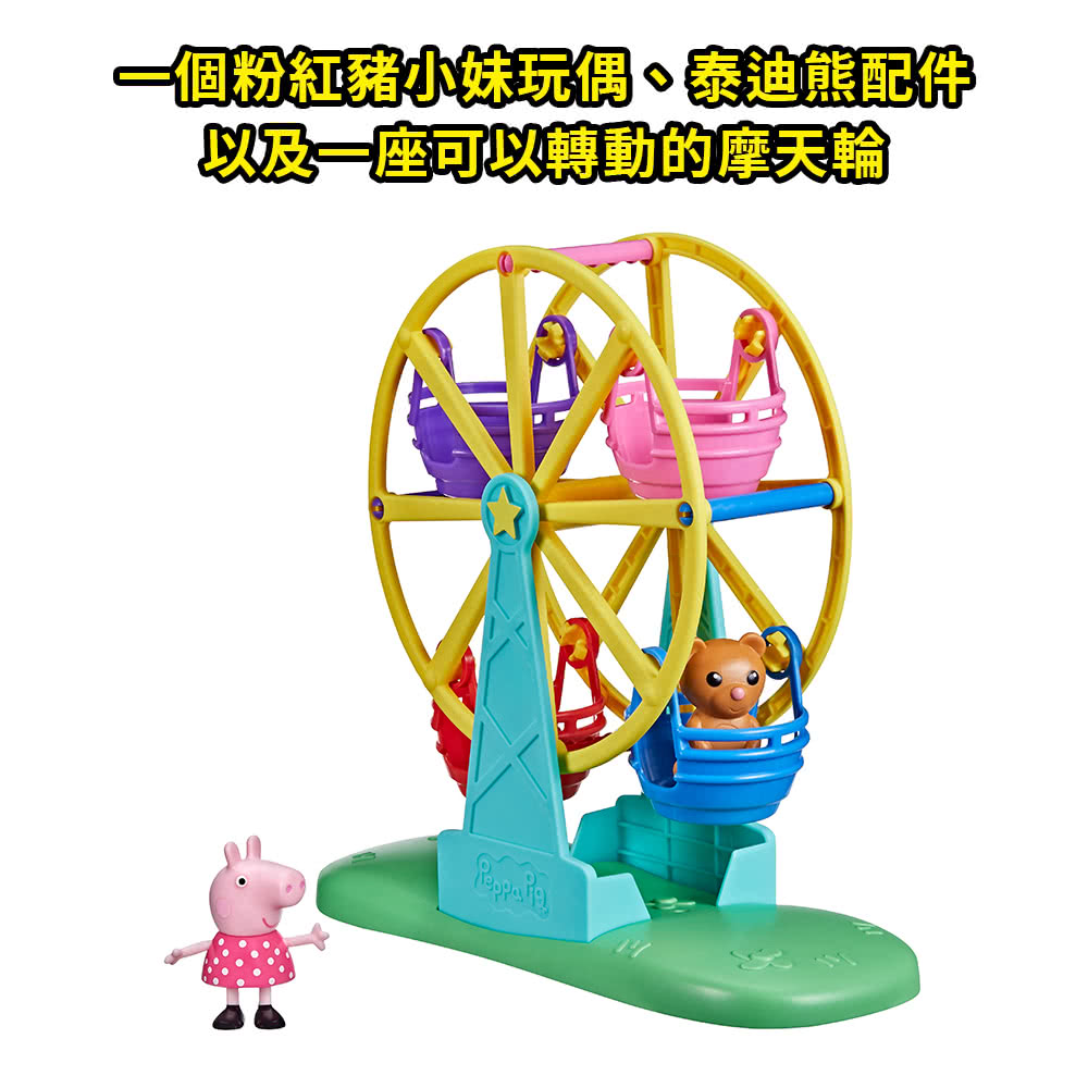 1)內容:摩天輪場景組、3吋佩佩公仔及小熊公仔