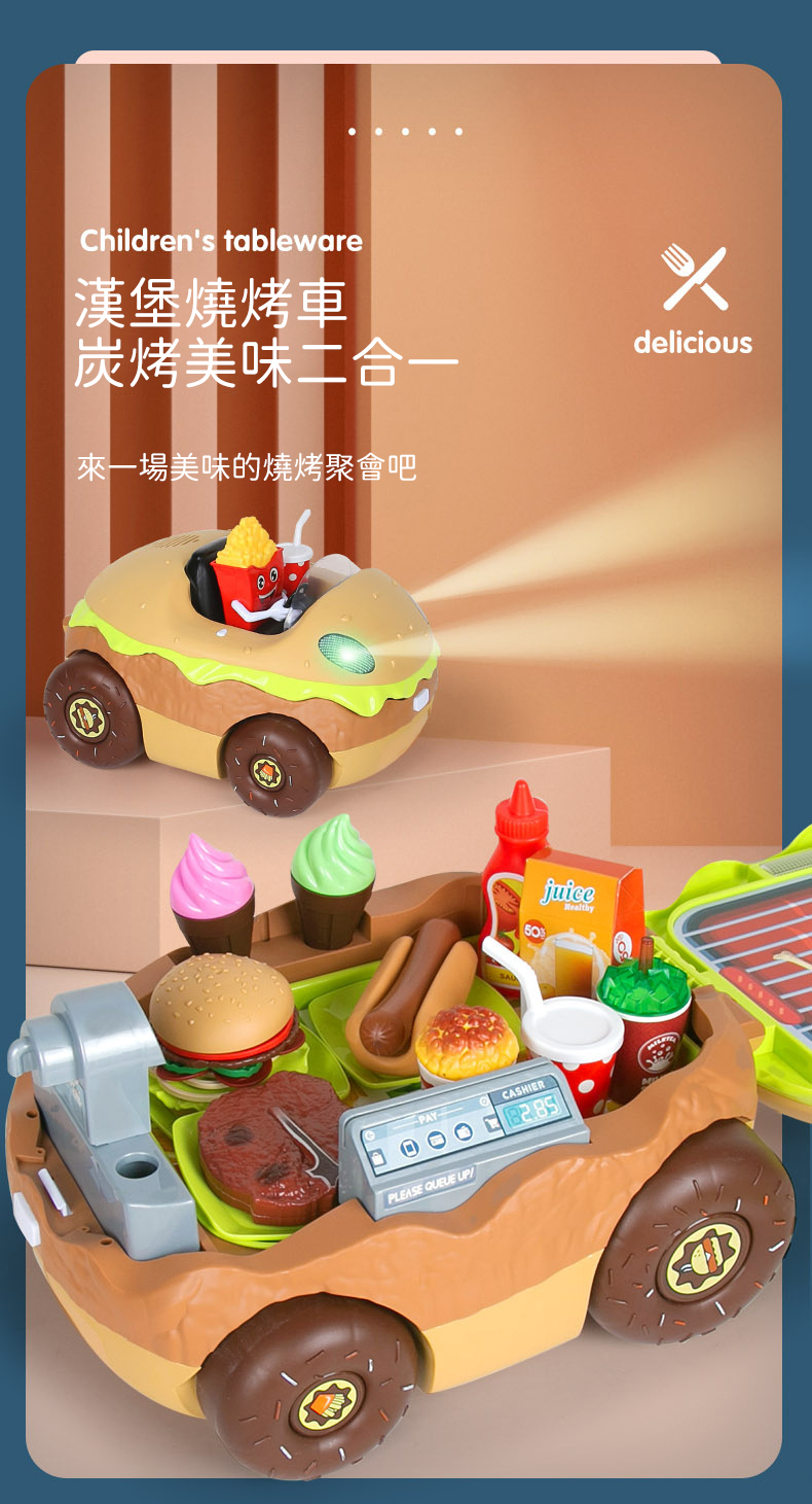 Children's imitation play house wine toy hamburger barbecue two-in-one toy